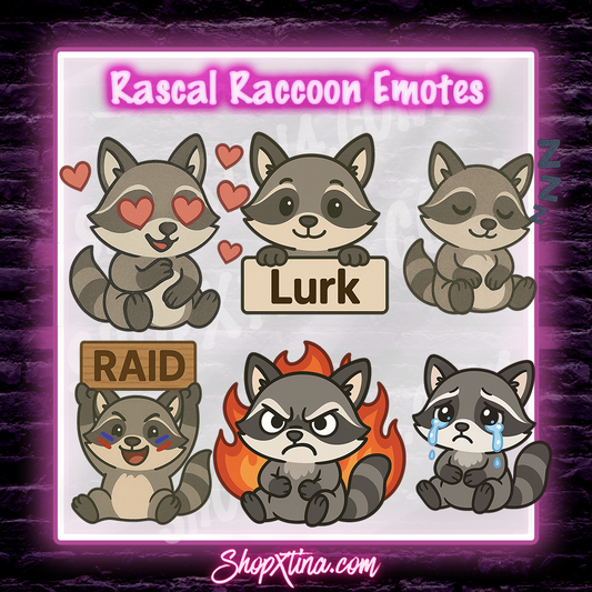 Rascal Raccoon Emote Set: 13 Emotes for Twitch, Discord, Streamers & More