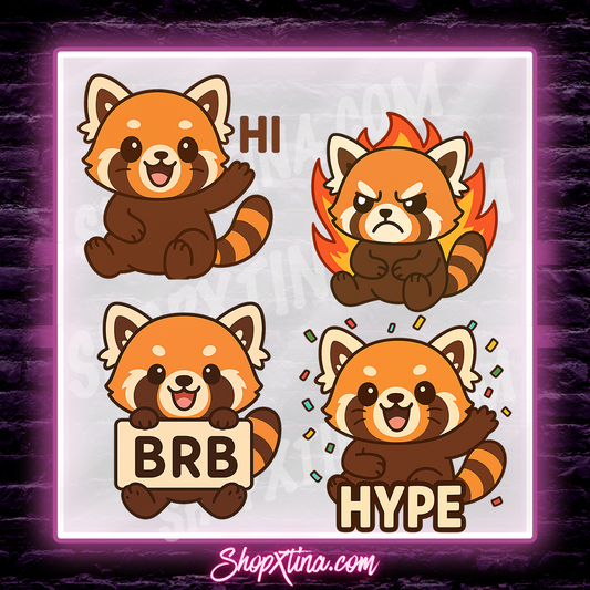 13 Fluffy Red Panda Emotes | Discord, Twitch, Youtube, OBS, Streamlabs | Hype, Love, Lurk, Raid, Cheers & More | Great For Streamers