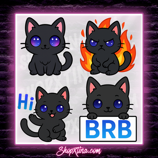 13 Black Cat (Galaxy Eyes) Emotes | Discord, Twitch, Youtube, OBS, Streamlabs | Hype, Love, Lurk, Raid, Cheers & More | Great For Streamers