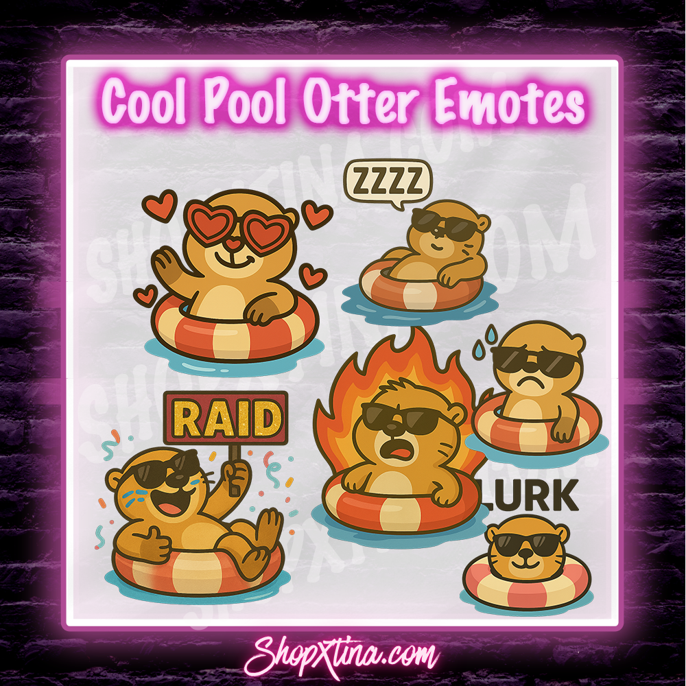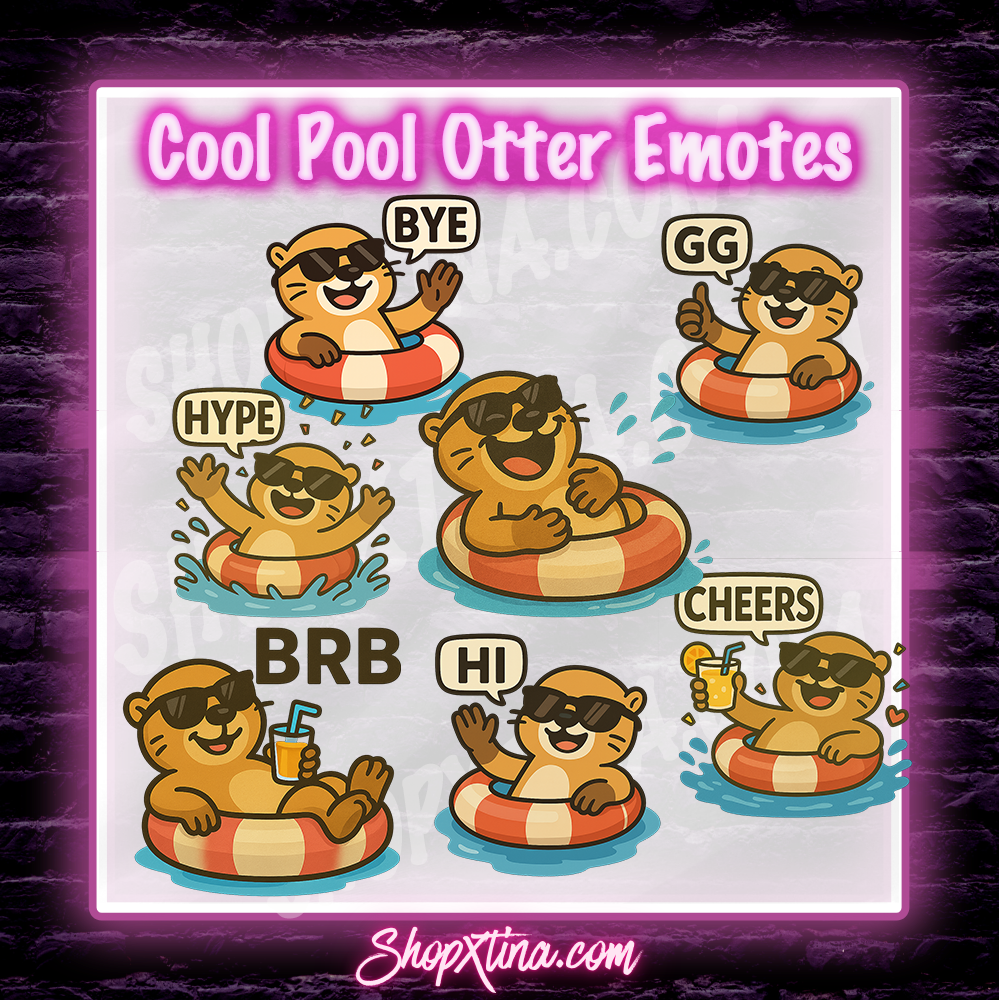 Make a splash on stream with this adorable otter emote set! These high-quality digital emotes feature a chill otter floating in a pool ring, rocking those summer vibes in every emotion—from HYPE to RAGE to ZZZZ. Perfect for adding playful personality to your Twitch, Discord, or YouTube chat.