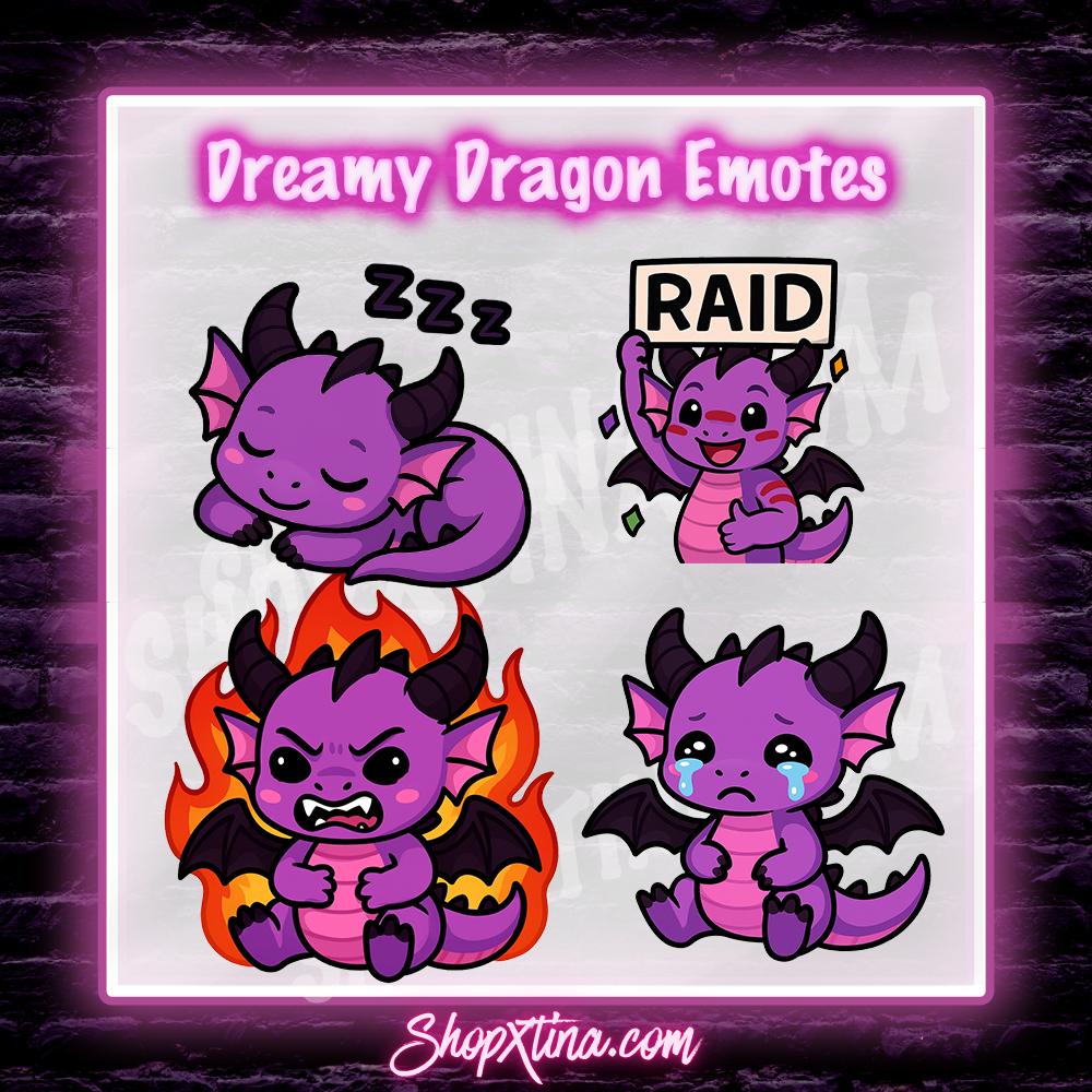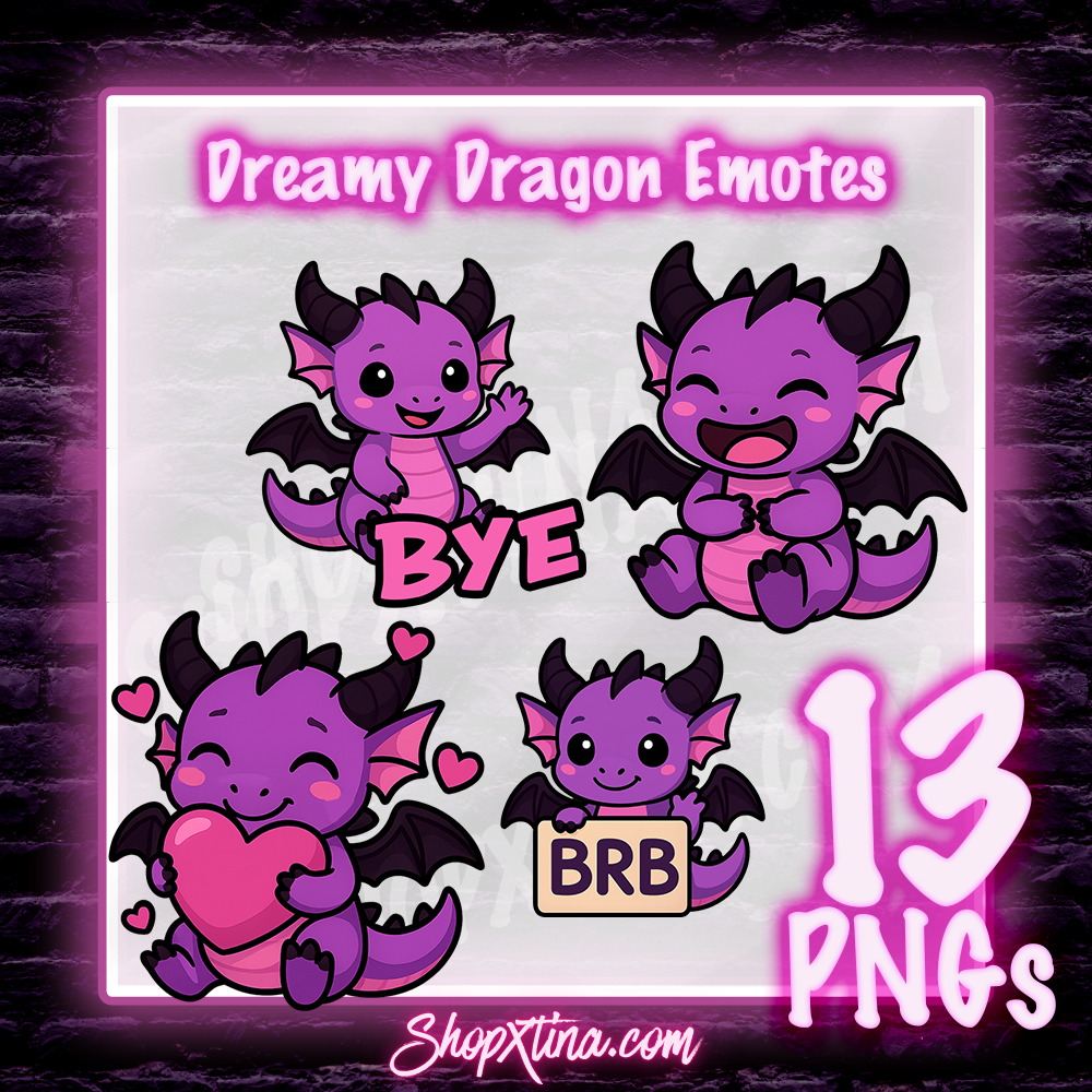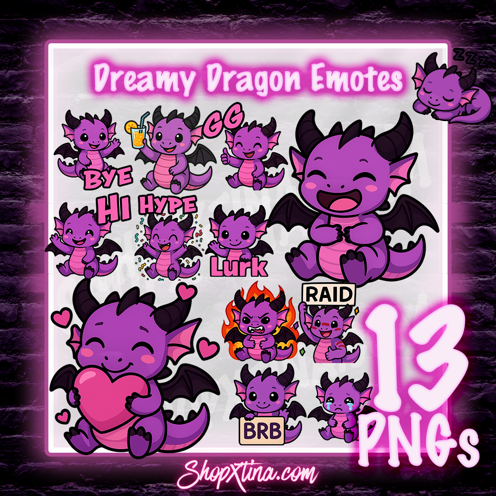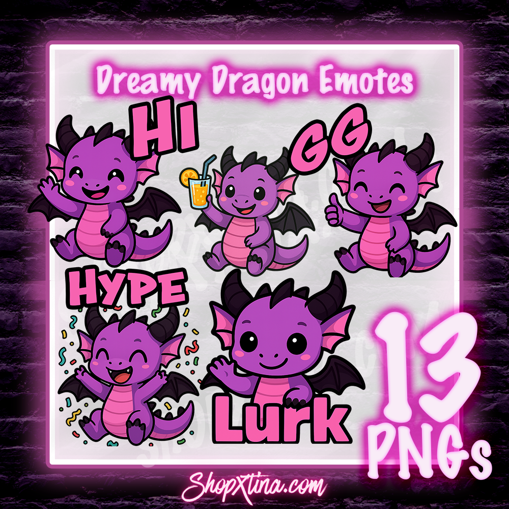 13 Dreamy Dragon Emotes | Discord, Twitch, Youtube, OBS, Streamlabs | Hype, Love, Lurk, Raid, Cheers & More | Great For Streamers