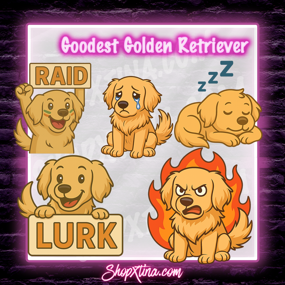 Meet your new stream sidekick: a golden retriever so cute, your viewers might start barking. 🐶💛 This full emote collection is bursting with tail-wagging charm—from hype-filled howls to sleepy snuggles and everything in between. Whether your chat’s LOLing, lurking, or going full raid mode, this goodest boy has their back (and belly rubs).